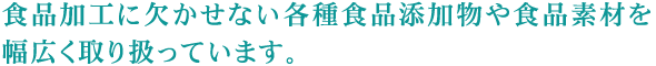 サンダイヤでは、香料・調味料等の各種食品添加物や、畜肉・水産および果実・野菜の加工品等、食に関する幅広い商品を取り扱っており、国内外の様々な商品をご提案致します。